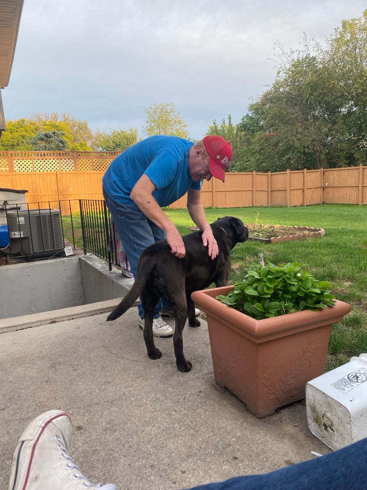 Budweiser hat. Gene Belcher pin. Smoke hanging out of his mouth. Gotta love hanging with the old man.