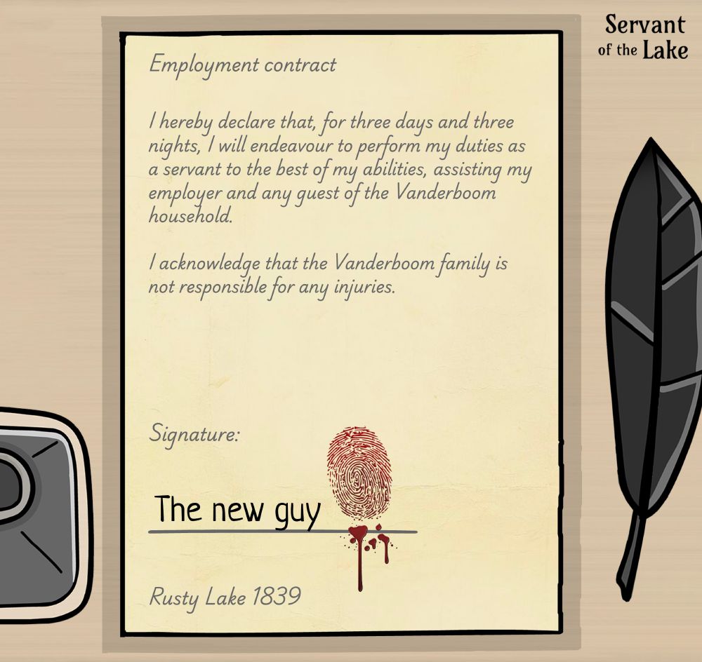 Welcome to your 15 - 30 min free-to-play trial period as Servant of the Lake for the infamous Vanderboom family! Visitors are arriving soon, and our work begins now! 🫴
