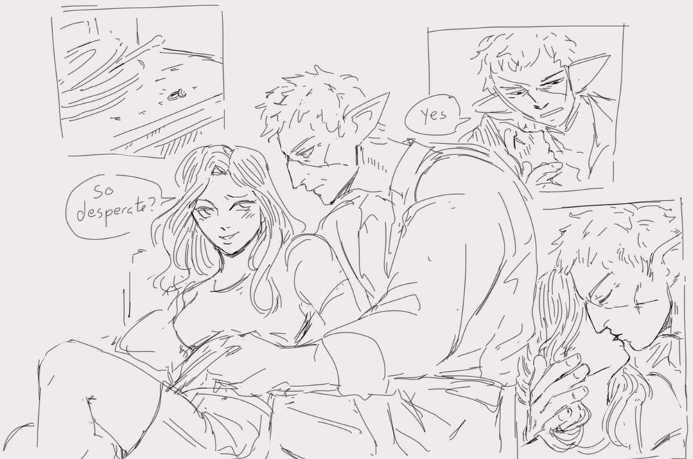 @josephinebrause.bsky.social you have been so kind and drawn my boys & WoL so I wanted to return the favor. I intend to color him a bit but here’s the sketch of Frayeur 🥺 He is a difficult bastard to capture.
