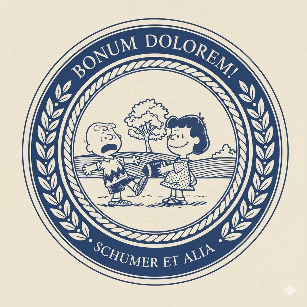 Propose insignia for the Democratic leadership (AI generated, as I don't know how to draw). Chuck Schumer / Chuck (Charlie) Brown. More than a coincidence? You decide.
