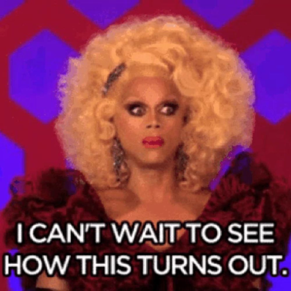 a drag queen is wearing a red dress and saying `` i can t wait to see how this turns out . ''