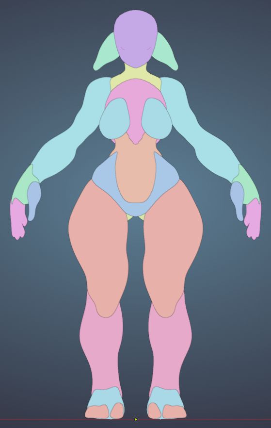After the character sheet is done(front, back and side) i send it to blender, and start blocking the main shapes out.