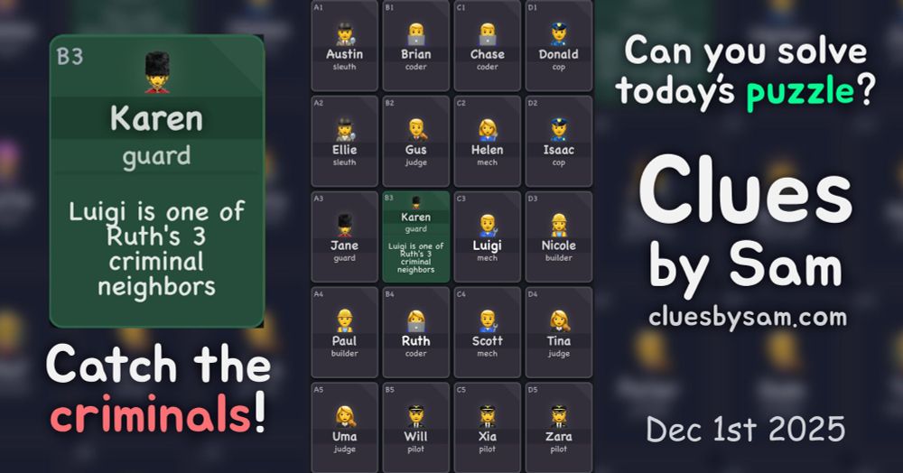 I solved the daily Clues by Sam, Dec 1st 2025 (Easy), in less than 7 minutes