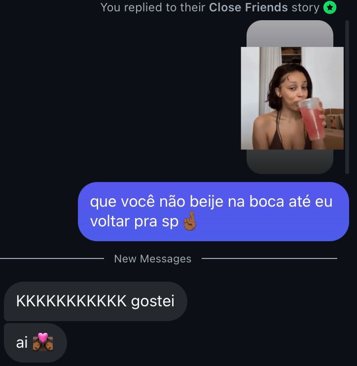 fui em um rolê ontem e fiquei encantada com uma mulher que tava lá, pedi pra minha amiga levar o bilhetinho que eu fiz com os meus contatos e agora pouco a menina me seguiu, vou dormir em paz hoje 🧘🏽♀️