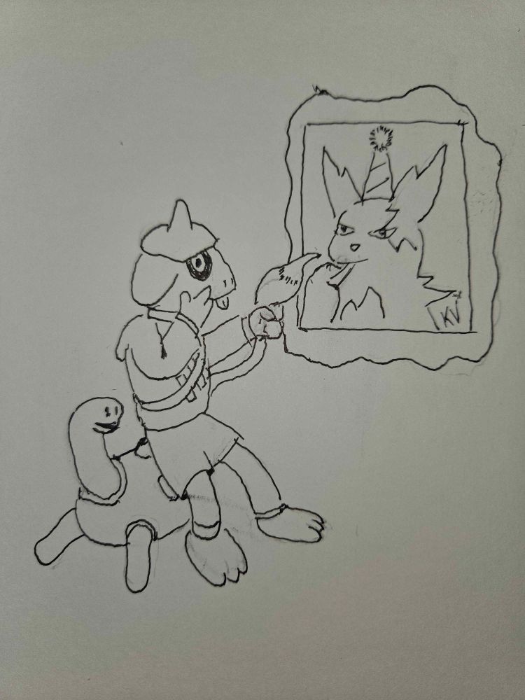 We interrupt our month long Hollow Knight characters to celebrate my best friend's birthday. His Smeargle is recreating the Zangoose celebrating his birthday last year with the help of Shuckle. "Smeargle used Psychic on the portrait, it was effective at holding it in place."
