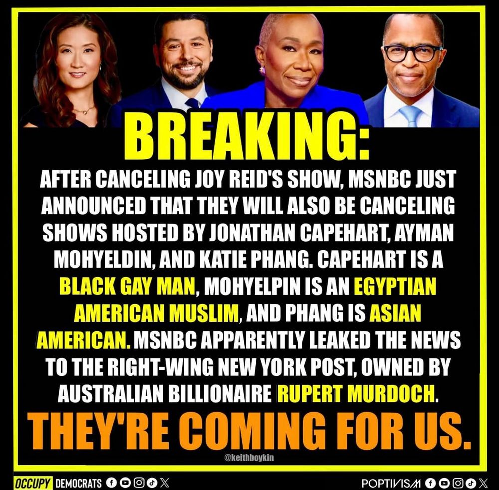 @nicollewallace.bsky.social @lawrenceodonnell.msnbc.com @chrishayesg.bsky.social @maddow.msnbc.com please speak up about this… This is absolutely unacceptable.