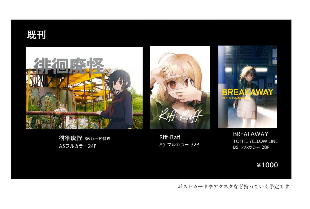 既刊の第一弾『廃墟×イラスト本』や他のイラスト集も持っていきます。