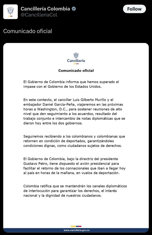 A misleading headline from BBC. Colombia was never against deportation flights, they protested the deportees being sent shackled on military planes. Colombia will send its presidential plane to take the deportees that were turned back yesterday. That was Colombia’s position before the threats.