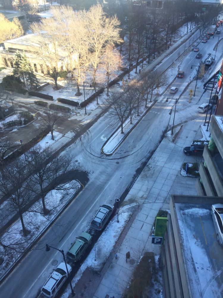 One year after my first race ever was canceled due to excessive heat, I finally took to the Corporate Challenge course tonight. High 70s and humid, sweating down to my socks. The lone photo I took captures the feeling perfectly.