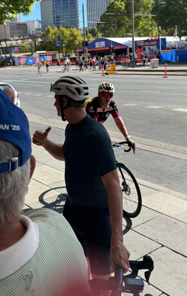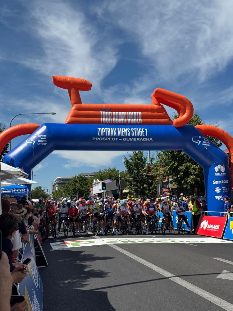 Musings Stage 1 #tdu what an experience to see my first stage race live. Worlds was a great day to meet the #couchpeloton, however joining #detours is beyond an experience. The start line, race start walk through and spending breakfast and lunch with Grace Brown. Watching at the KOM - fantastic!