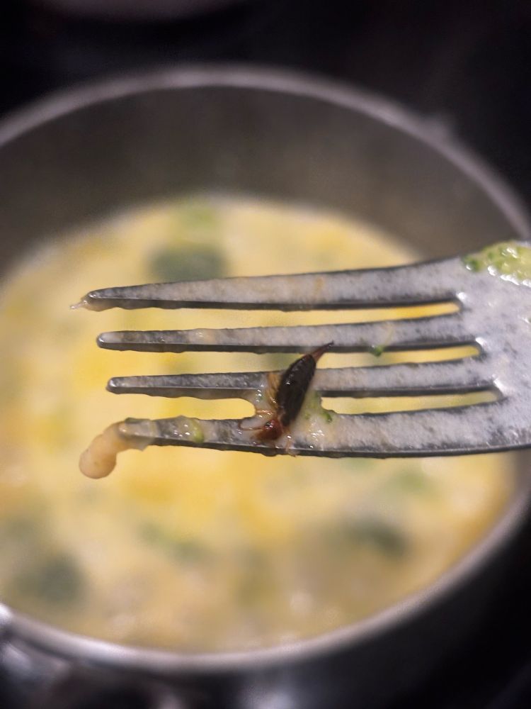 i was making soup and i saw a brown thing in it and looked to see what it was and it was this im actually gonna cry