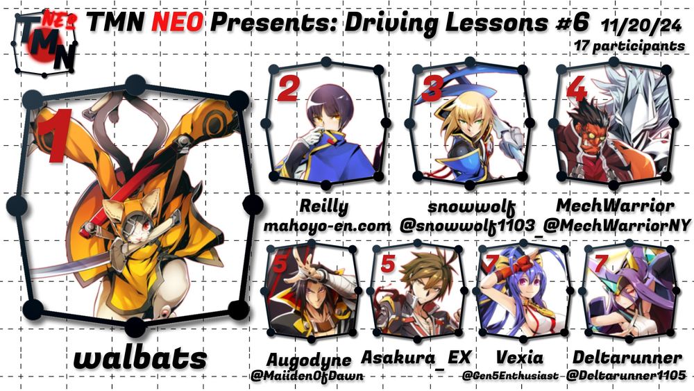On the brighter side, tomorrow we'll be running our Beginner/Intermediate BBCF bracket, Driving Lessons #27!