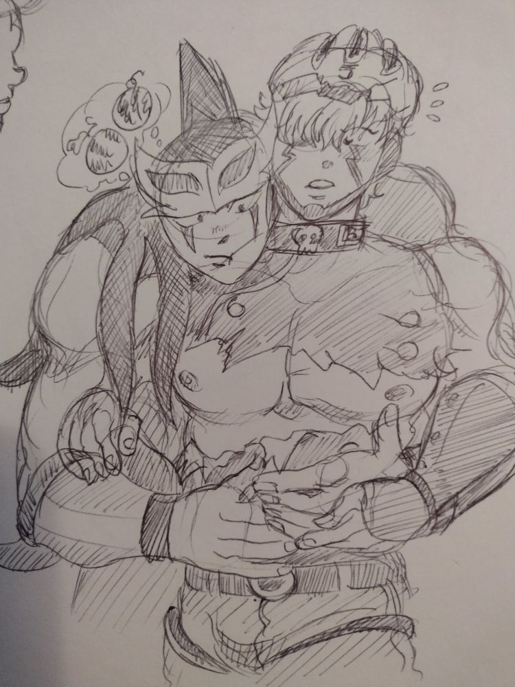 Doodling my fav no respect #3, but of spicy Hanzo x Bone Cold. 😋 #キン肉マン