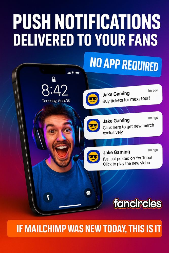 A quick click on a link or QR code and you own that relationship with your fan directly and can send mobile notifications to them when YOU want, on YOUR terms and link fans to anywhere.
