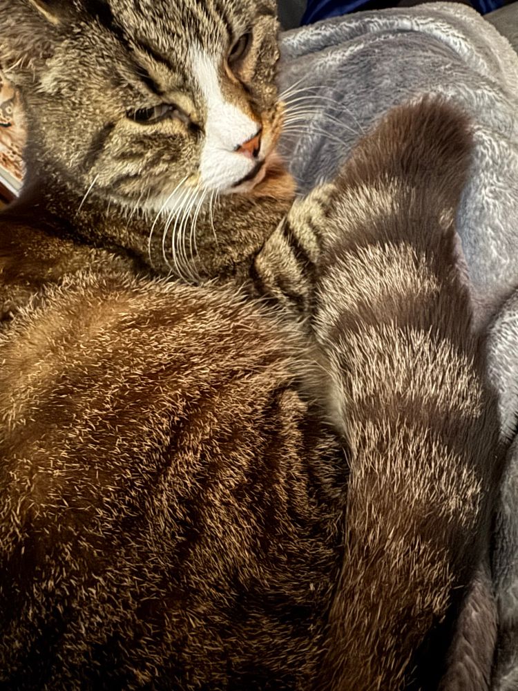 Daily Bailey 397 - He interrupted my dinner to claim my lap and then to clean himself, ensuring I get my daily dose of floof