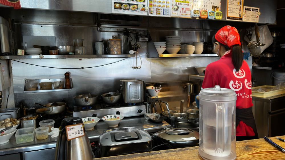 £5.90 from a tiny, 12 seat ramen shop in Denden Town, Osaka. Those 12 seats were spread over two floors. 😄