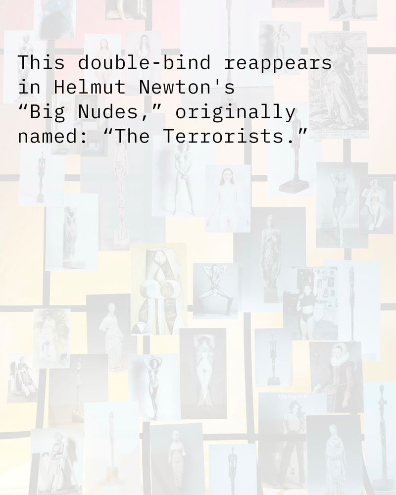 hi bluesky! last fall, i started writing a quarterly essay/ newsletter thing based on images in my work. i’m sending out the 2nd one this week featuring giacometti, helmet newton, terrorists and bombshells, and a Mesopotamian goddess. sign up below⤵️