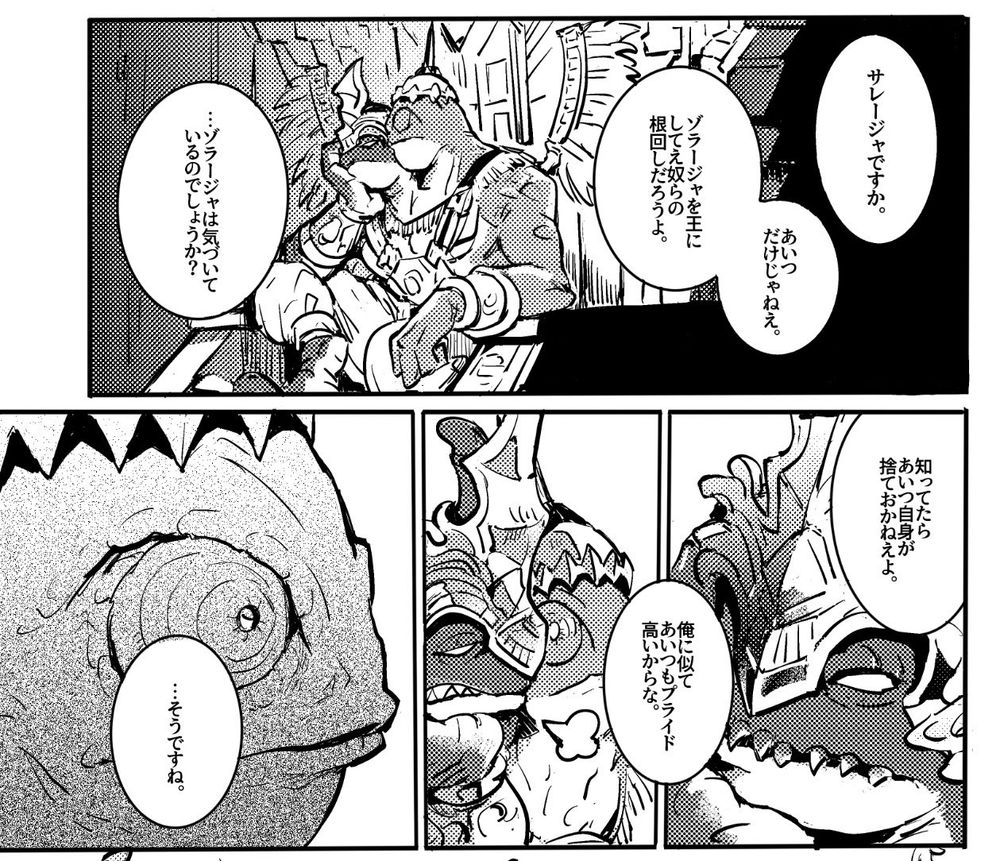 ゾ漫画頑張ってます〜最初の方の4ページ! #頭割り6準備中