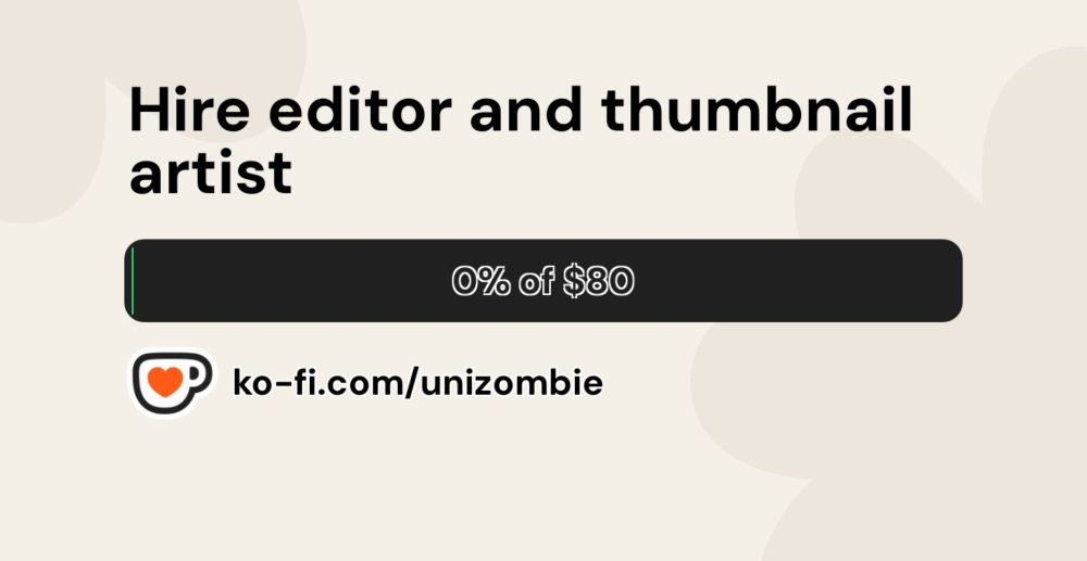 I make a goal to try to hire an editor and thumbnail artist so I can make better content. I'm not forcing you to donate but if you have some extra cash it would be amazing!