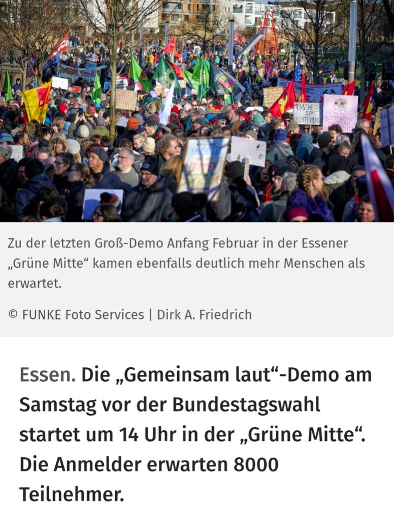 Guten Morgen, "Gemeinsam laut - Im Wahllokal und auf der Straße“. Ab 14 Uhr in der Grünen Mitte. #Essen #Gemeinsamlaut Bitte erzählt es weiter!