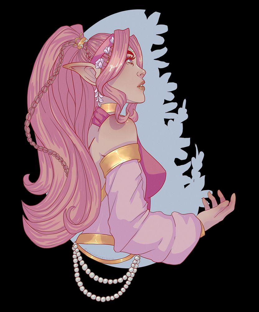This is Yama Yomi (she/her), she has hanahaki disease. Her eyes actually turn red when she coughs up plants!