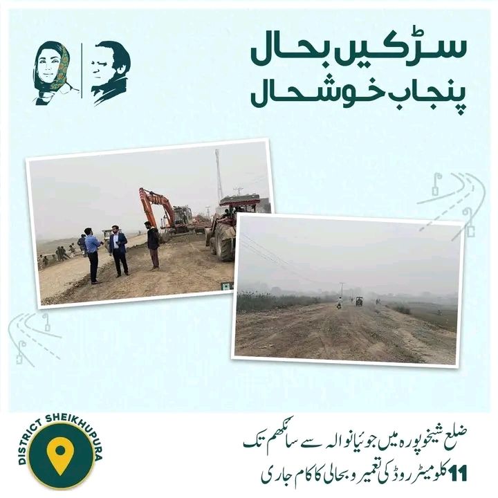 ضلع شیخوپورہ میں جوئیانوالہ سے سانگھم تک 11 کلومیٹر روڈ کی تعمیر کا کام تیزی سے جاری