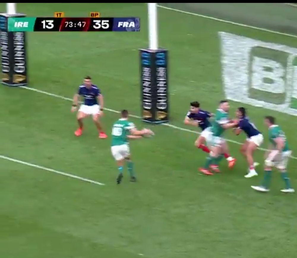 Seen it with my own eyeballs at the time. A Test 10 on the ball 5m from the line and both 15's knew to prioritise defending the passing channel and not the tryline