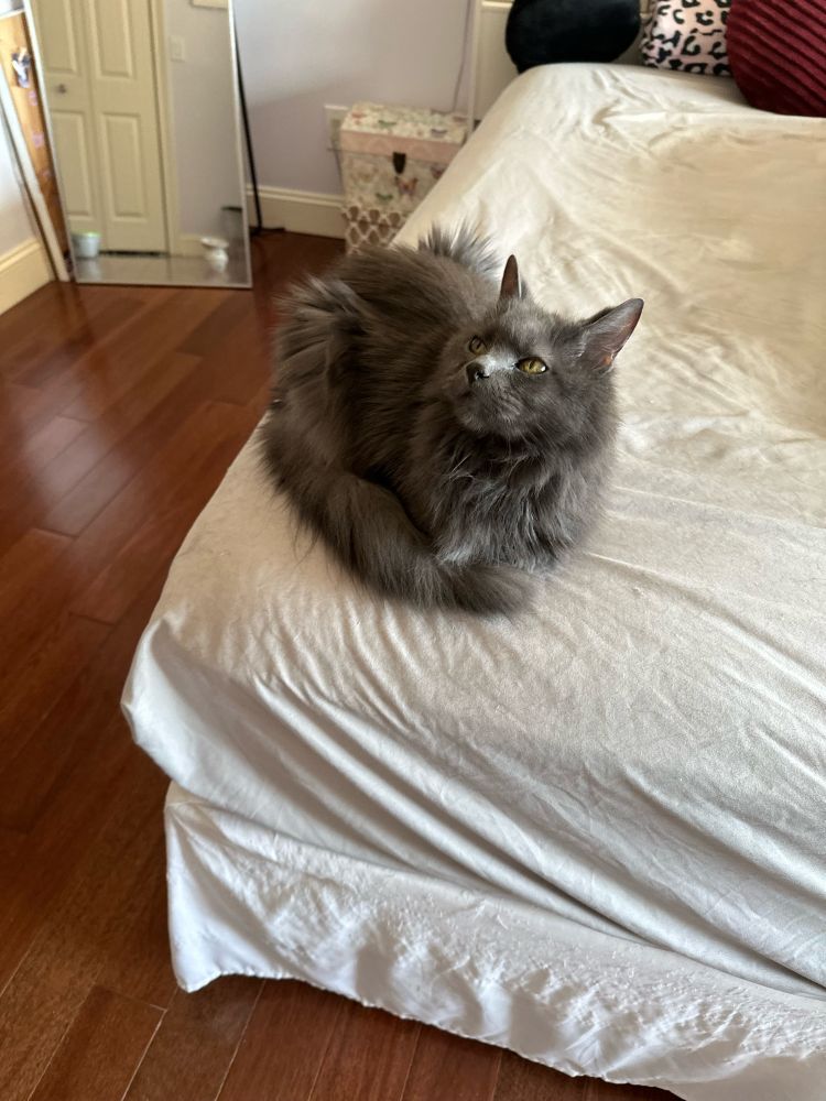 Good morning Bluesky. More cat photos to start the day. This is Cloud, in all his blind and deaf glory. ♥️