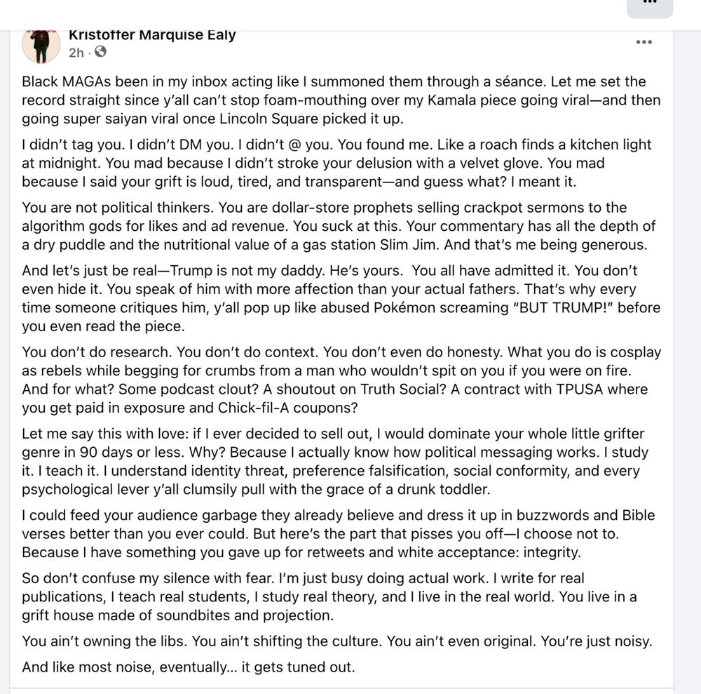 I am a professor of political science, podcast host, writer, and brain surgery survivor. I got little tolerance for misinformation and disinformation. Subscribed to my substack. 100% free! https://substack.com/@professorealy?utm_source=global-search