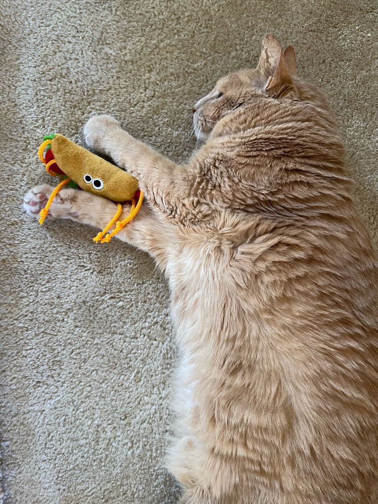 Hello! Newbie here. Just setting things up and finding my way around. Here’s my sweet Cassie doing what she does best. Resting after a vigorous game with Mr. Taco.