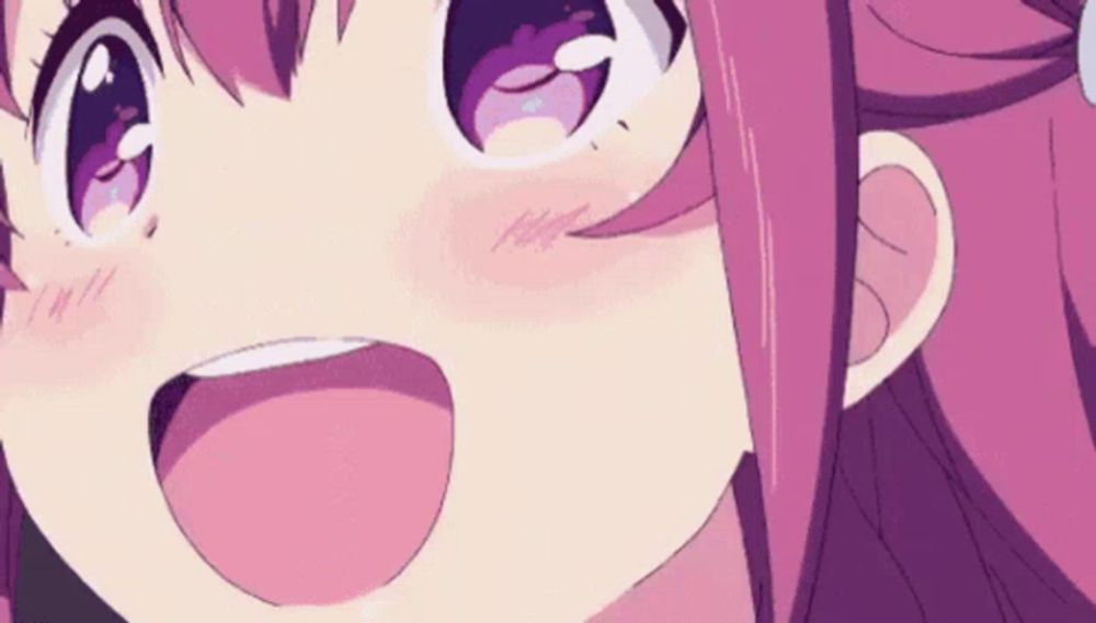 a girl with black hair and cat ears is making a funny face .