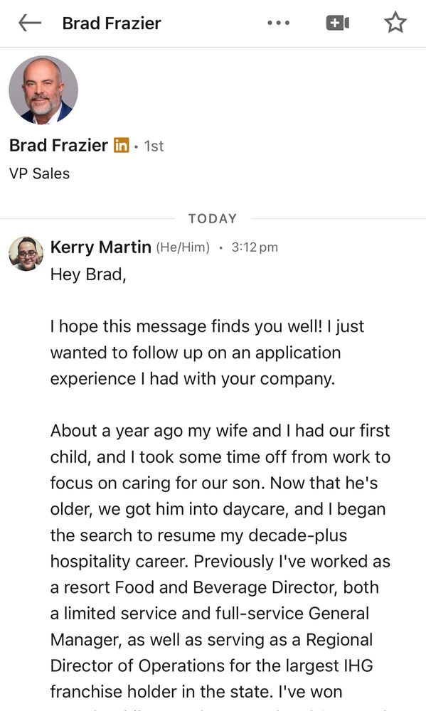 I interviewed a few months ago for a Sales role and the GM loved me but the Regional Sales Director never followed up. He just added me on LinkedIn. I sent him this: