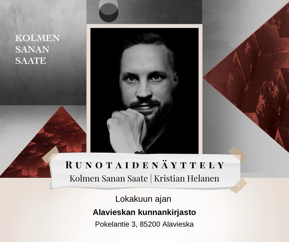 Alavieskan kunnankirjastossa runotaidenäyttelyni, käykää tutustumassa! (Vapaa pääsy).