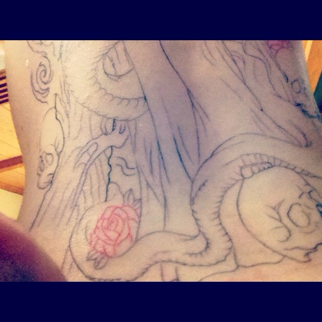 色入る前の筋彫りってやっぱ良いな 青のグラデも好きだけど