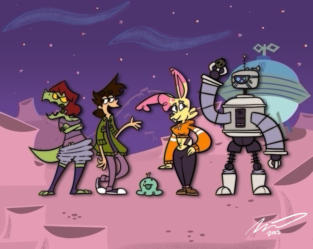 Orbital Fugitives but they're a cartoon from the 1950s