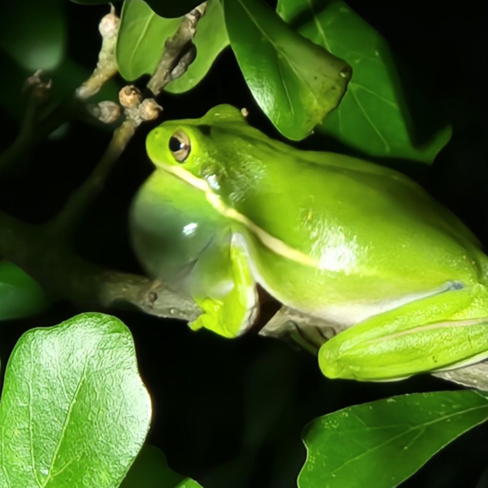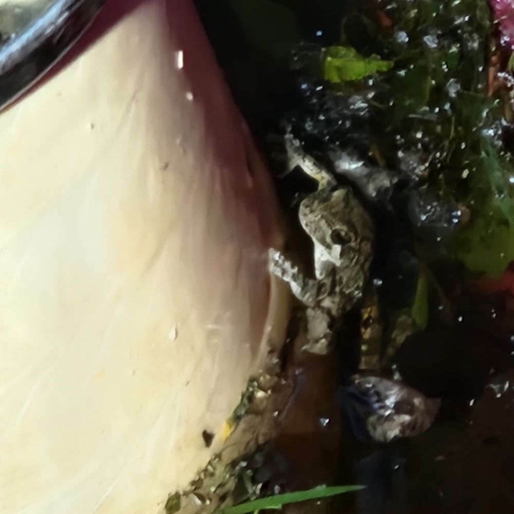 One of my favorite parts of summer cutie tree frogs sleeping chillin in odd places. I have to keep a close eye one time I left my pool bag outside and one was sleeping in it! I got it back into the wild though. They are literally my favorite part of summer!! Also for people who know alt text am I