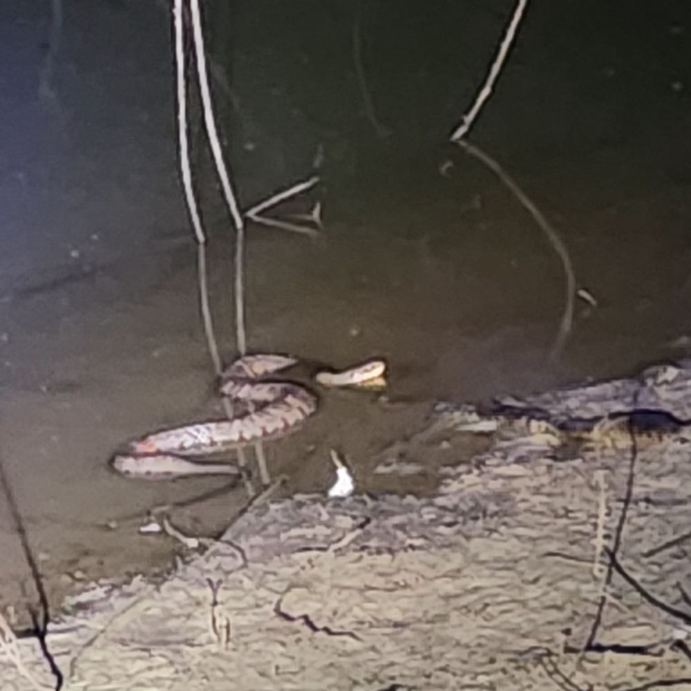 Saw this big bad in the pond not sure what kind it is. I assume it's not poisonous since the ducks were laying right next to it.