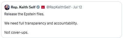 Call Congressman Keith Self and tell him to finally sign Rep. Thomas Massie’s #ReleaseTheEpsteinFiles discharge petition — which he cosponsored!