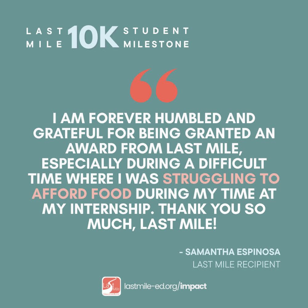 Learn about the student experience from Last Mile Recipient, Corina Salas: https://vimeo.com/1081493292