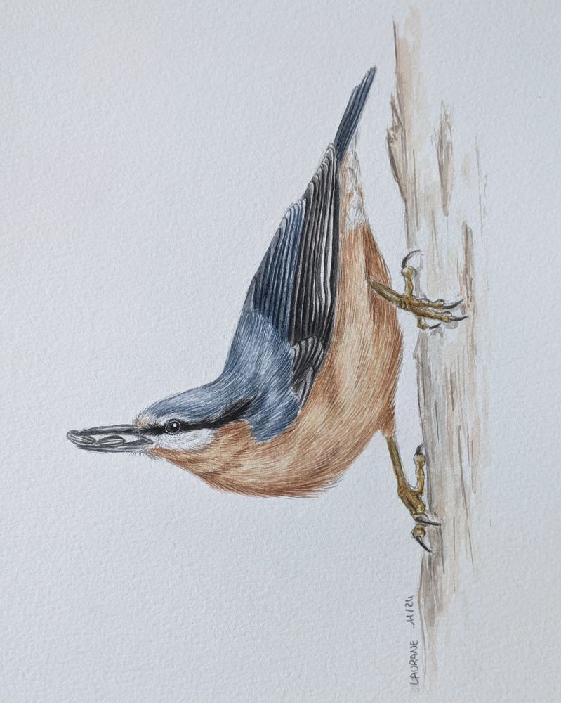Projet en cours... Des Sittelles nous font le plaisir de passer à la mangeoire en ce moment. Je me dois donc d'en représenter une ! 🤩
