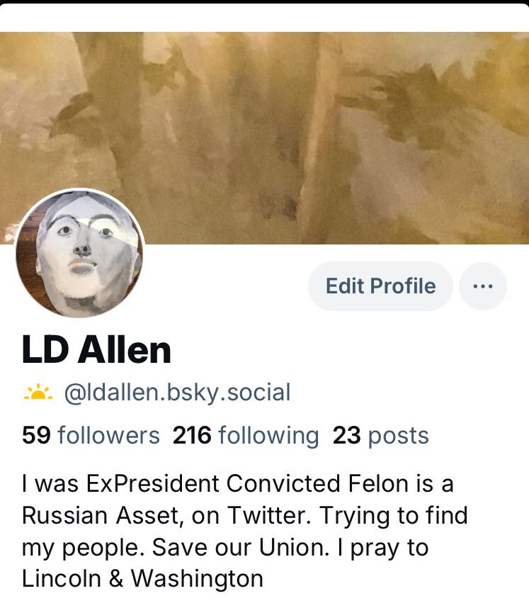 I was ExPresident Convicted Felon is a Russian Asset, on Twitter. Trying to find my people. Save our Union. I pray to Lincoln & Washington