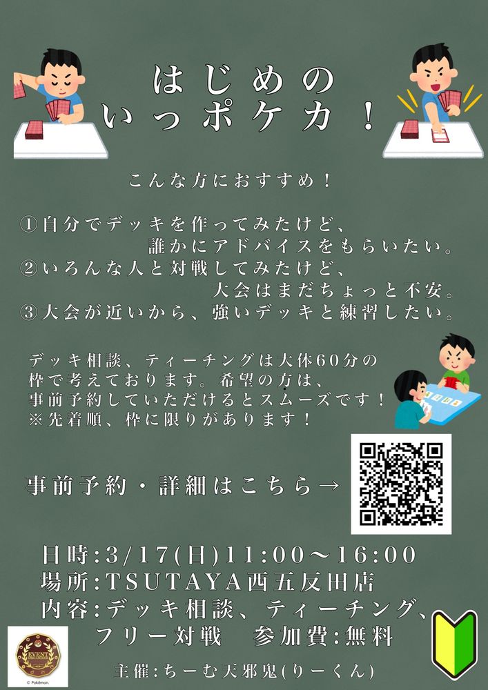 3/17(日)にTSUTAYA西五反田店さんにて、はじめのいっポケカ を予定しております。