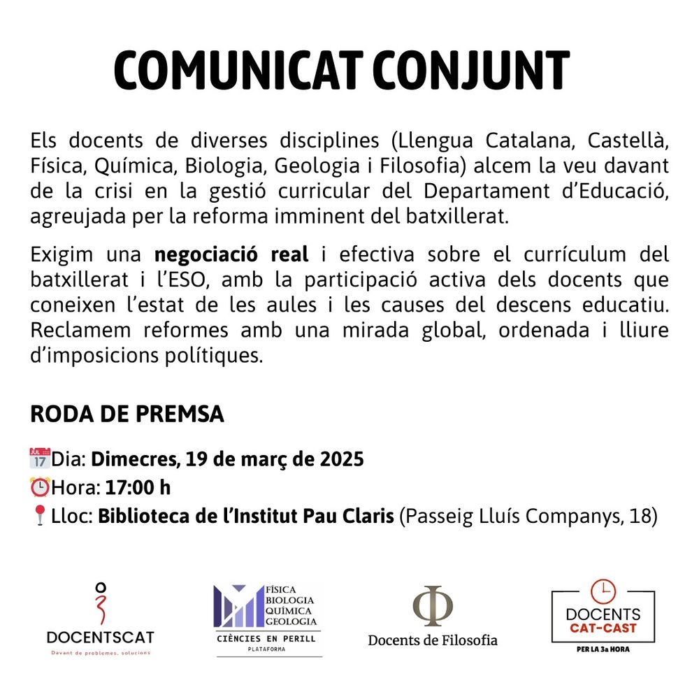 Coneix les nostres reivindicacions al nostre web: sites.google.com/view/docents...