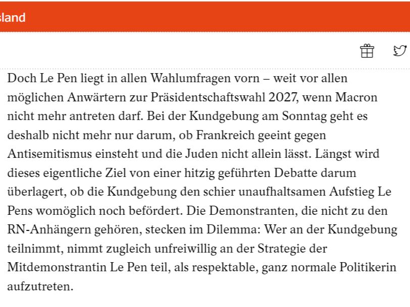 Er ist aber auch der Tag, an dem Marine Le Pen für Juden wählbar wurde. Sie umgarnte die Demonstranten, Macron enttäuschte sie.