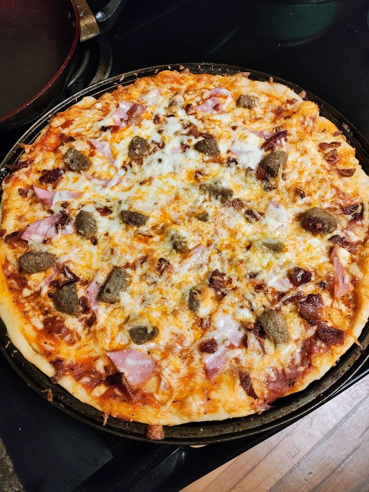 Used my frozen baguette dough to make pizza for dinner tonight. Literally no regrets. #baking #blacksky