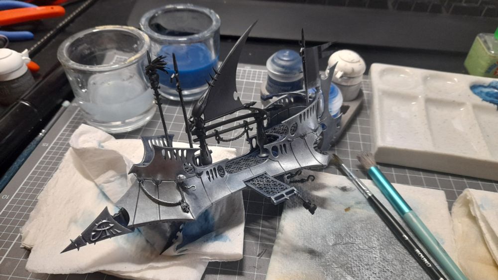 Armour recipe: Kantor Blue base, overbrush with Stormhost Silver / Soulstone Blue 1:1 mix.