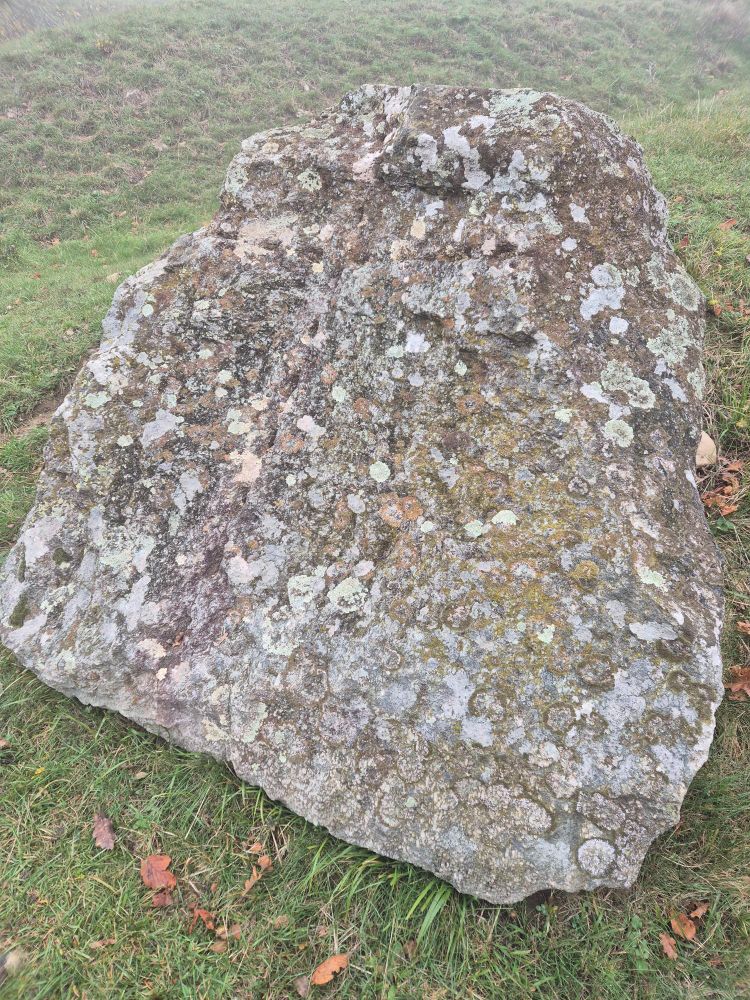 #standingstoneSunday an erratic block with cross-shaped workings, propped upright to commemorate a local quarry worker killed in an accident in the late 19th c