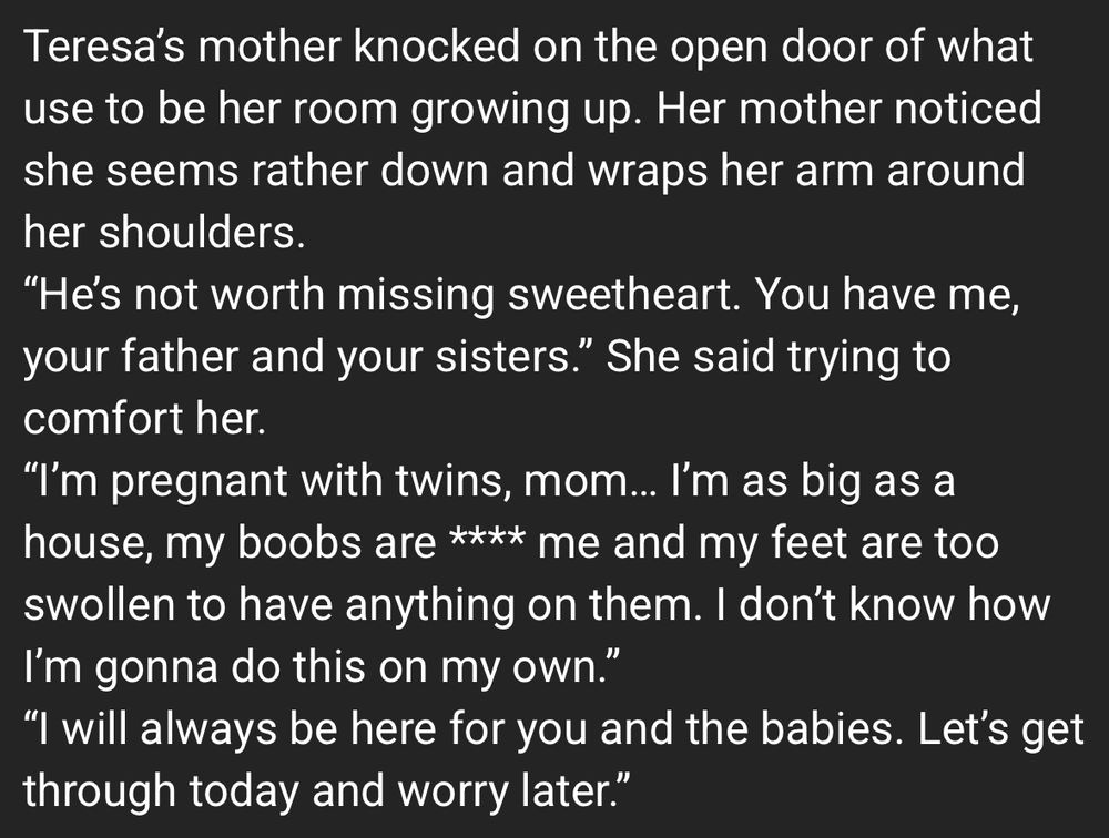 Nurse Rita approached him; gently checking his wounds and taking vitals. He couldn’t help but admire how big and pregnant she is, a smile tugging at his mouth.