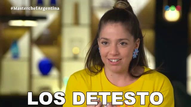 ALT: a woman in a yellow shirt is smiling and says los detesto