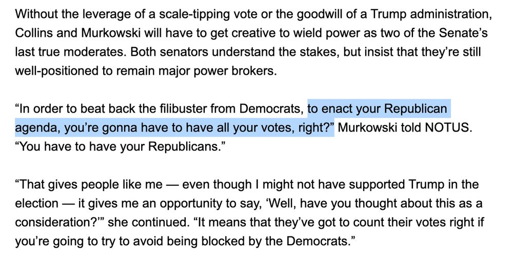 Today in the newsletter: Republican Senate moderates are strategizing how to best play their hand in a 53-vote majority.